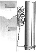 Sobem pelo exterior de canos e calhas verticais que estejam separados de uma parede por até 7,5cm de distância, apoiando as patas no cano e as costas na parede ou vice-versa e também abraçando canos e calhas que tenham até 9,5 cm de diâmetro. |